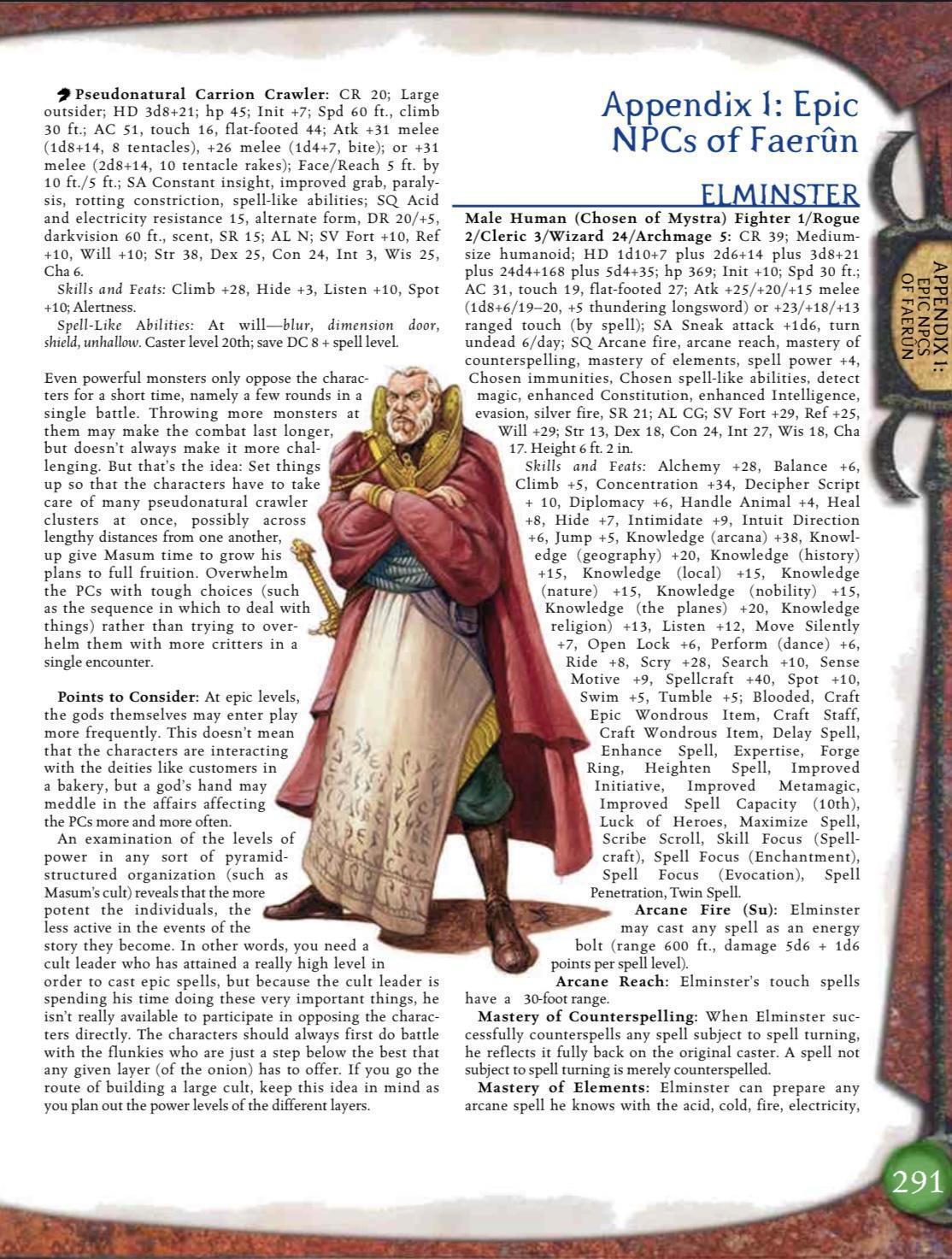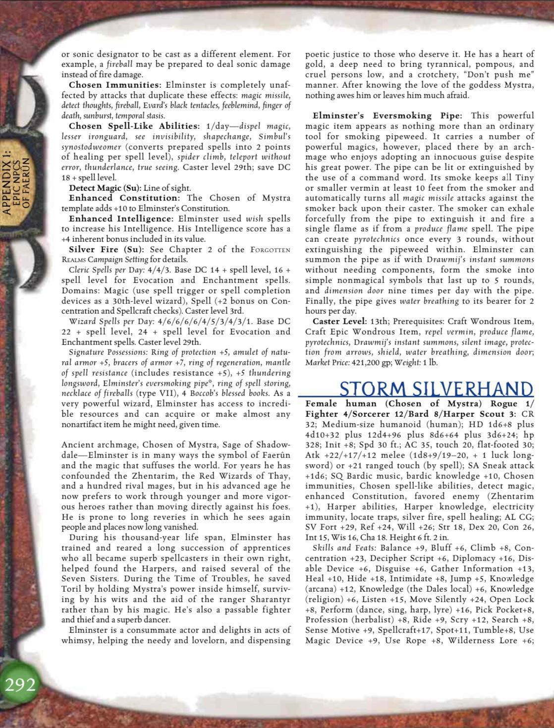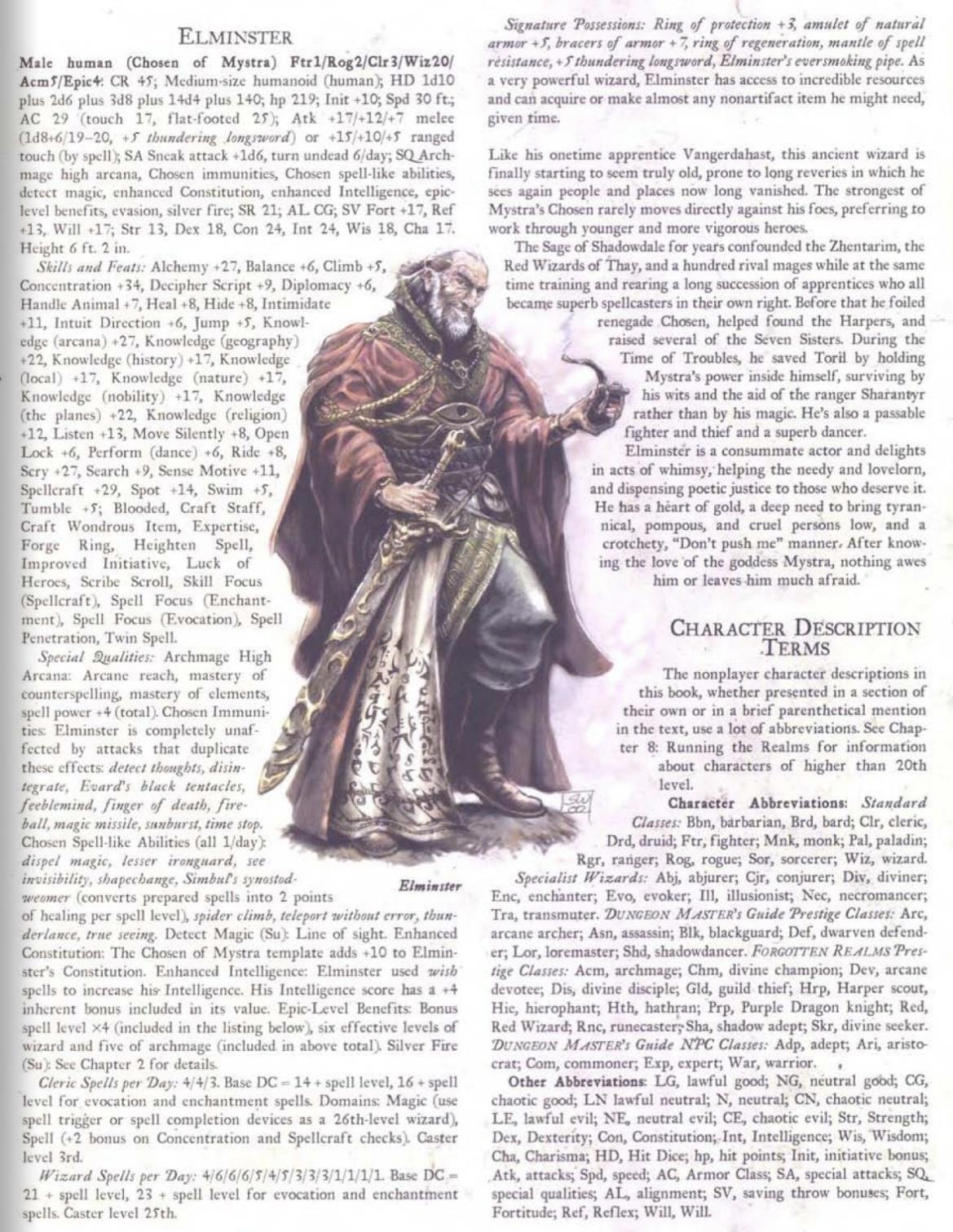 По статам кста Эльминстер не так и крут. Смотрел я его чарник. Если убрать "сюжетную броню" от Мистры то вобще пшик выйдет. А если рассматривать на фоне персонажей из Гнева Праведных например, то он вобще нуб =)