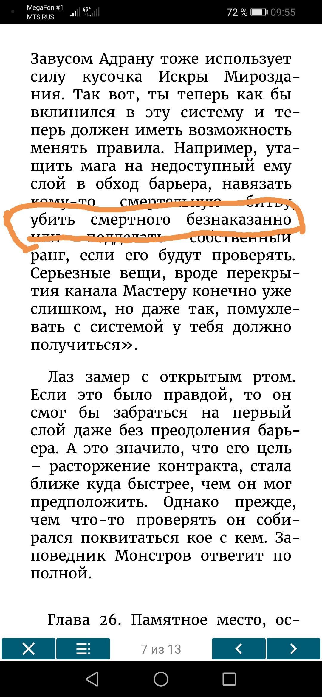 Автору. Конец 25 главы, Зверь рассказывает ему что он может менять правила, вызывать на дуэль и.т.д и главное, говорит что может убить смертного, но его главная задача не попасть на 1 сферу, а как раз таки убить 1 смертного что бы закрыть долг перед богине, и он уже это может сделать!