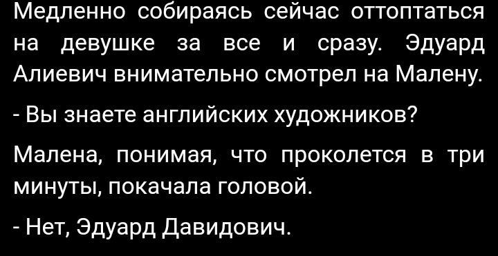 Здравствуйте. Там где у Вас сцена, вручения подарка на дне рождения матери Давида, ошибка. Отчество отца Давида : Давидович, но тут же рядом Вы по ошибке написали Алиевич. Или я что то не так поняла.