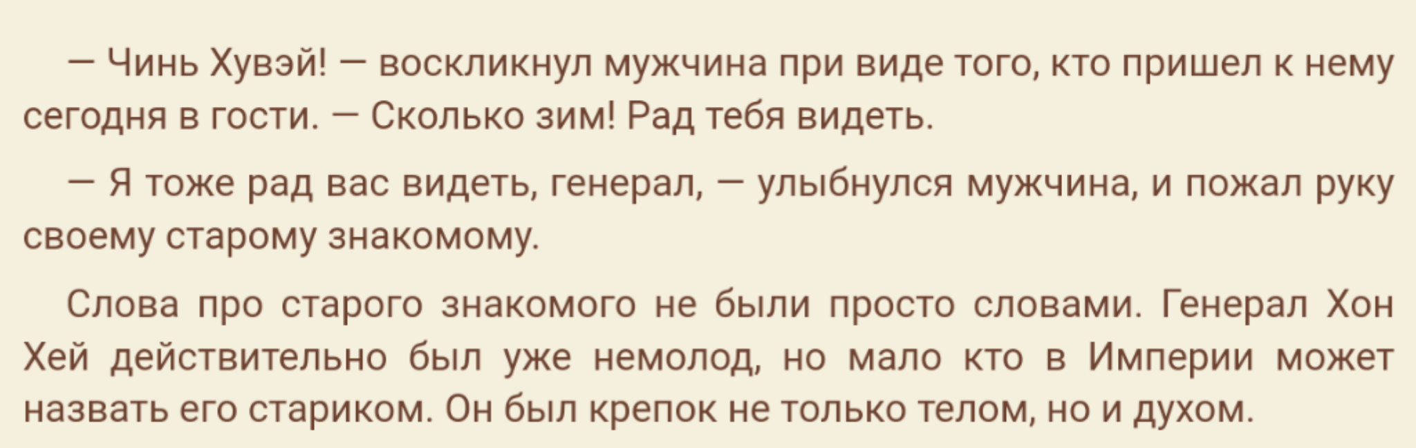Какие слова? Кто их сказал-то? Я про "старого знакомого". Что-то в этой главе много вот таких неувязок в тексте, кто-то ниже еще писал про "императрицу закинувшую кусочек ягненка в рот" - из примеров.  Воспринимать текст как-то неприятно, может авторы это как-то исправляют со временем, ведь раньше такого не замечал. Надеюсь просто придираюсь и мне в этот раз так голову стрельнуло. Только желаю авторам побольше отдыхать и продолжать творить такое же по качеству и увлекательности произведение. Это дорогого стоит, не опускать планку качества и интереса у читателей, надеюсь так будет оставаться и дальше.