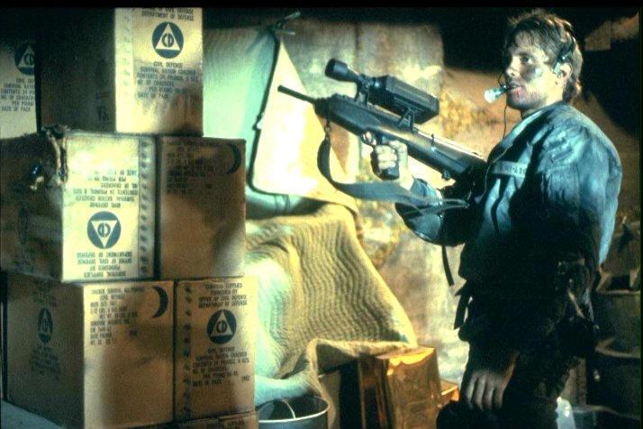 Вот Кайл с ней, кадр из первого фильма (обратите внимание на прицел и сравните его размер с оптическим сенсором Терминатора):