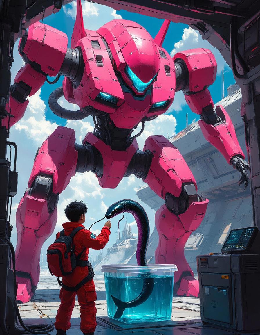 Вот кстати, картинка, которая не пошла на обложку из-за статичности и отсутствия сисек и какой-то явной подростковости гг, но где робот более-менее такой, какой надо.