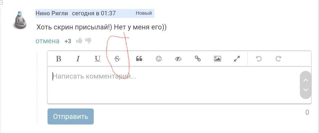 У меня при нажатии кнопки "ответить" появляется меню форматовразных , включая зачеркнутый. На телефоне. У вас тоже так должно быть. Проверьте.