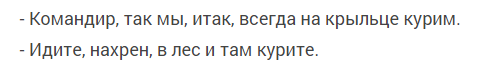 ахахах, нас так комдив гонял с курилки. Его тоже табачный дым бесил.