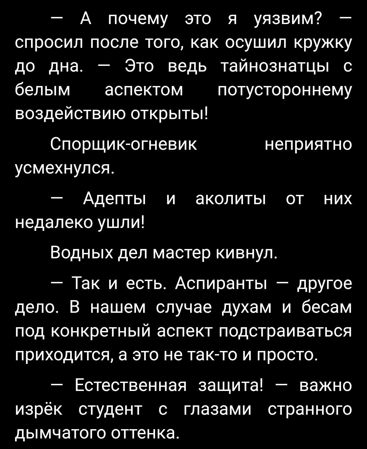 17 глава. Студенты рассуждают о том, что бесы опасны в основном аколитом и ниже. Начиная с аспиранта появляется естественная защита.