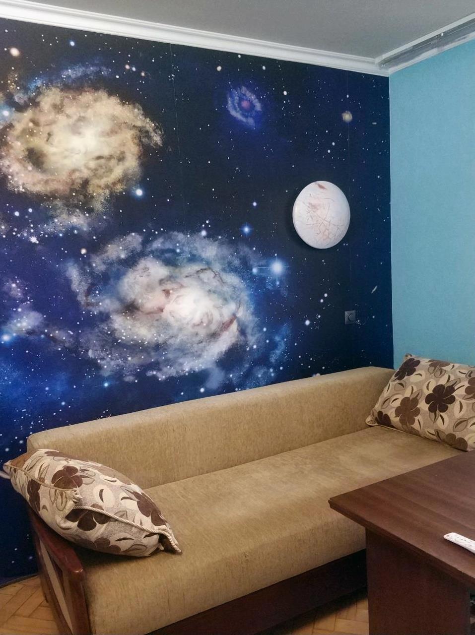 Так как работа печаталась на стену, мне важно было, чтобы сохранялась тексстурность. В момент взрывов и разрушения формы от галактик остаётся только крутящееся волчком облако газа. Это красиво может смотреться на картинке, но не на стене - у человека должна оставаться возможность рассматривать детали и с полуметра.