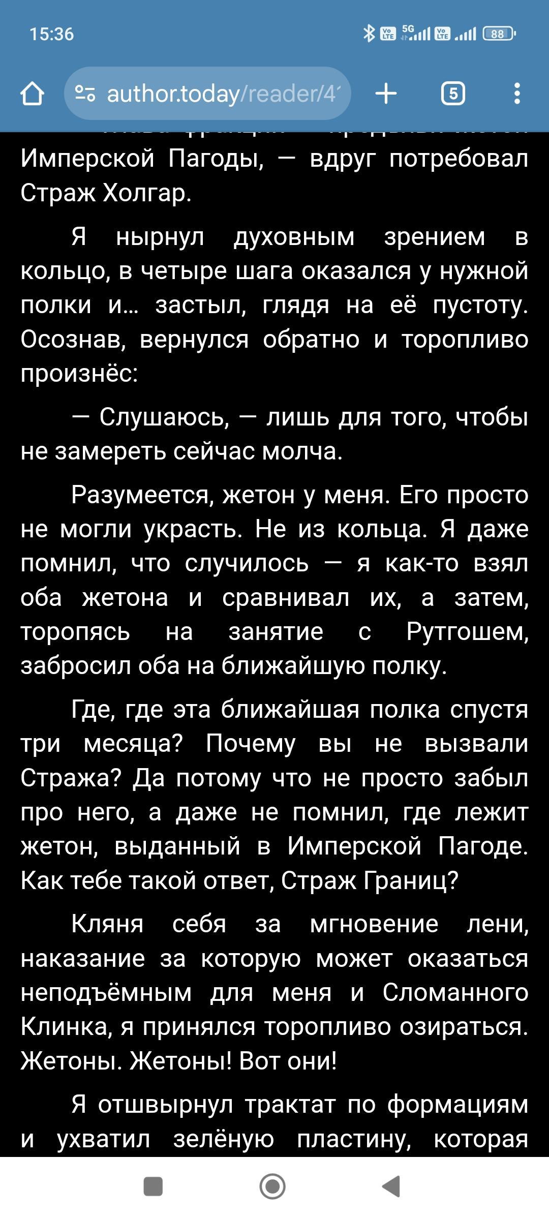 Уважаемый автор! Спасибо, глава как всегда на высоте. Только по-моему есть некоторая нестыковка. В начале главы ГГ достает свой жетон из кольца: