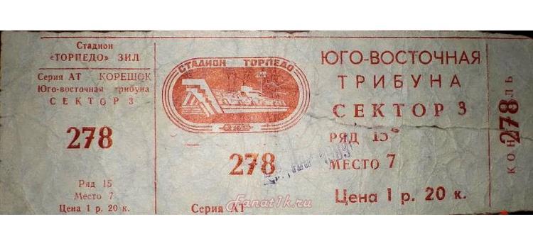 Автор привел  скрин билета, размещенного в сети к матчу Торпедо-Спартак 15 марта 1991 года. В 1991 как раз после январской денежной реформы и последующего отпуска цен они выросли на все довольно серьезно.