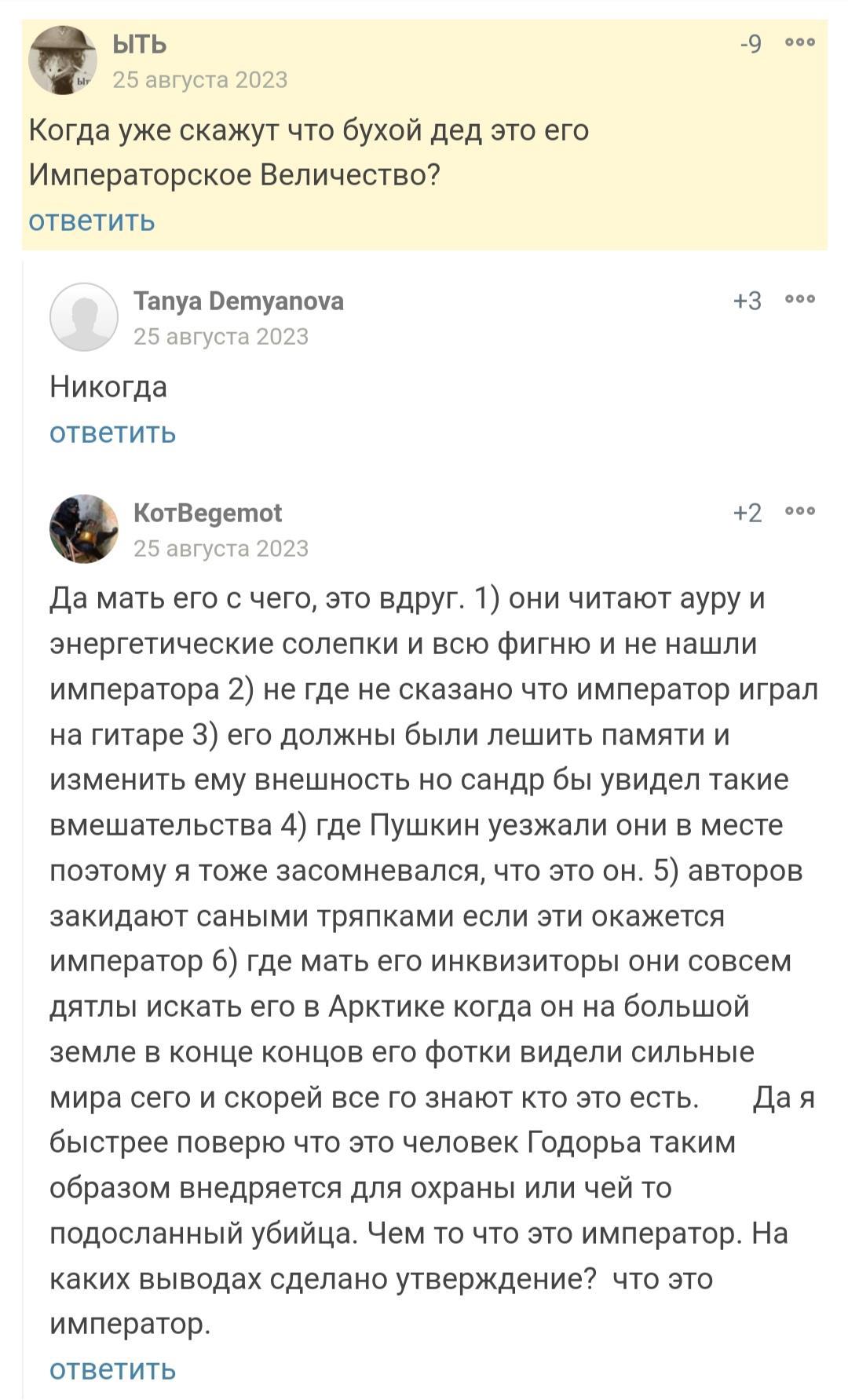 Когда уже скажут что бухой дед это его Императорское Величество?