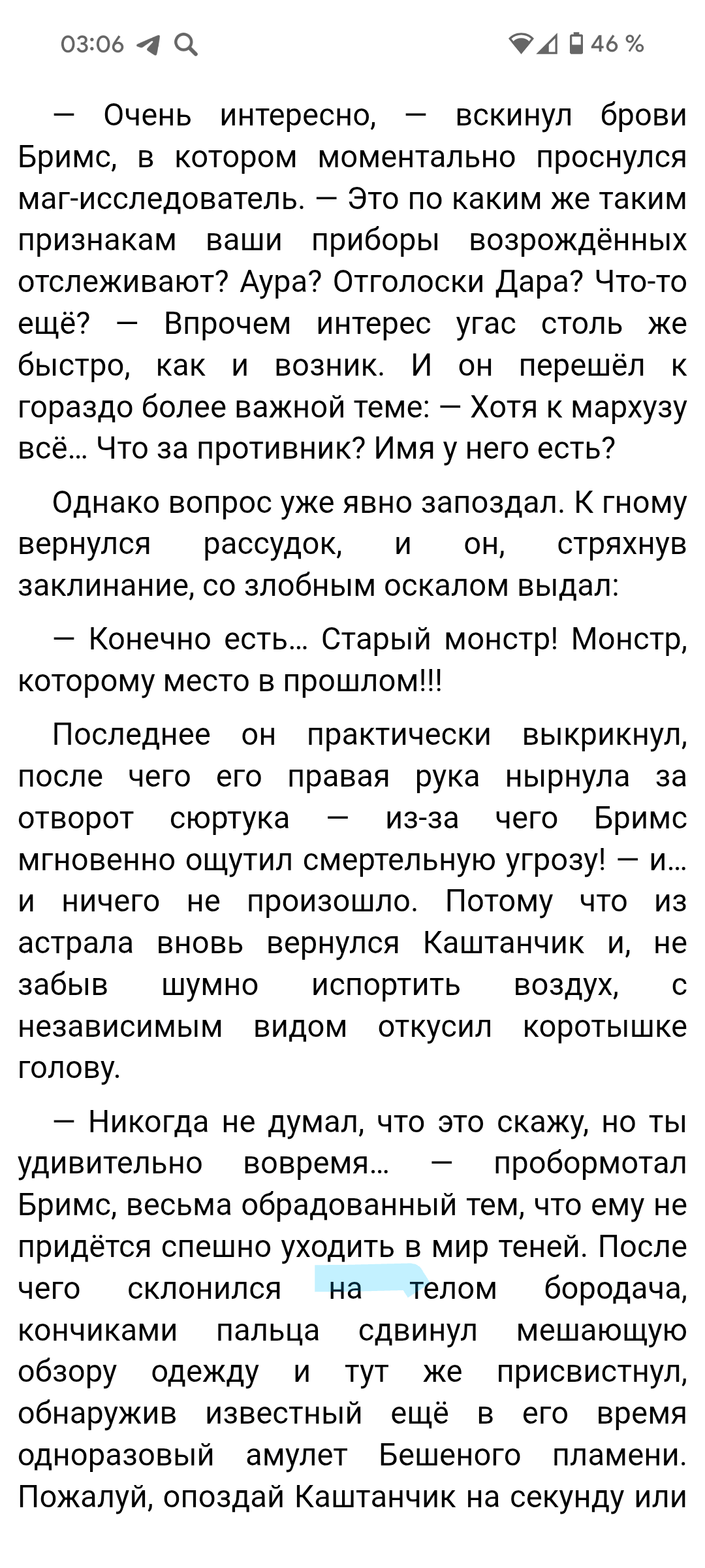 Нравиться что все достаточно продуманно, и героя поджидают задачи которые нужно решать с помощью эрудиции, хитростей, иногда силы и всего остального. Что касается сюжета, то не хотелось бы на него хоть как либо влиять своими вопросами. Хочется чтобы это был поток авторской мысли. Спасибо тебе Дима. Все супер, продолжай в том же духе.