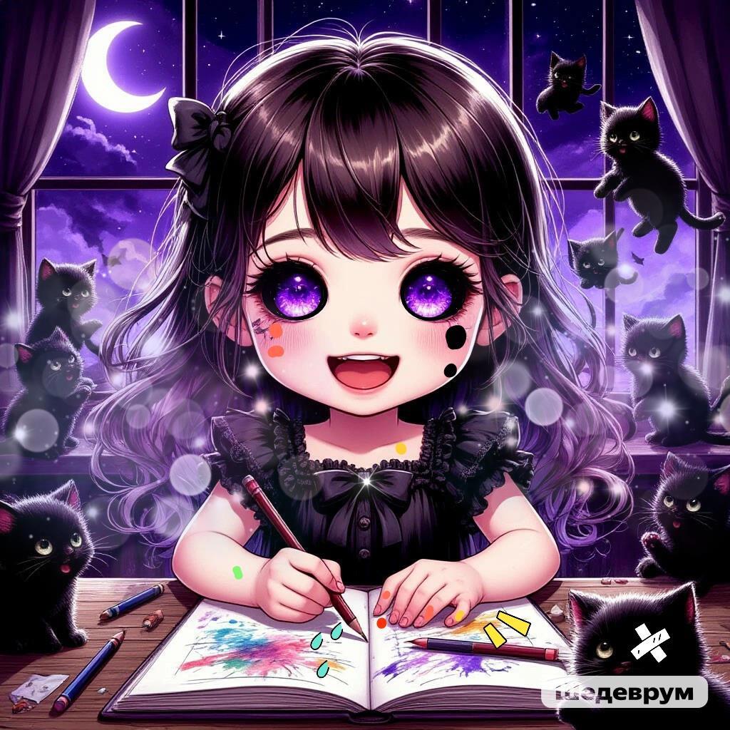 Ваааай! Какая зловещая милота, дайте мне затискать ей щёчки🥰🥰🥰🥰