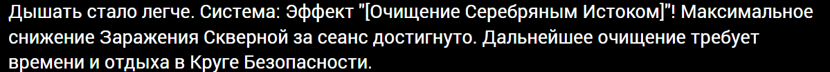 То есть за 1 сеанс можно очистится до определенного момента, а потом надо просто подождать!!!! Ничего делать не надо. Просто подождать, отдыхая в Круге. Но нет же, ГГ сам себя изводит тем, что Скверна в нем копиться, и это кошмар адский. Проблема решалась с самого начала. ГГ просто все прозевал.