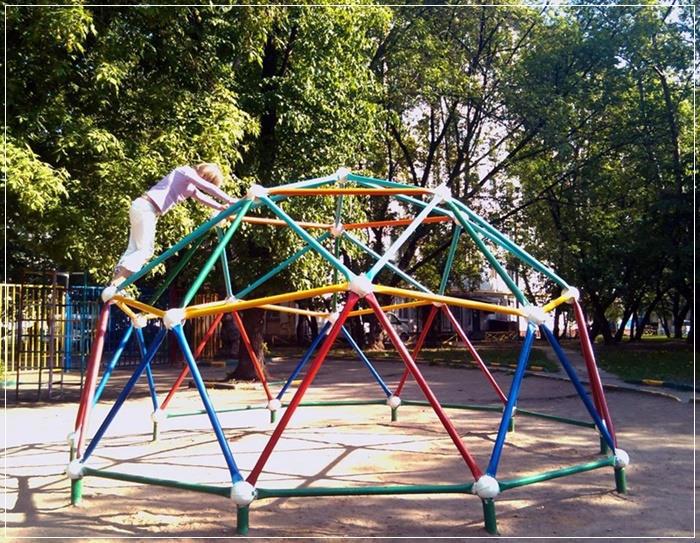 Такой высоты уже не застала. Обожала разные штуки для лазанья, но во времена моего детства уже ничего не строили сильно выше роста взрослого человека. Впрочем, для маленького ребёнка и это было достаточно впечатляющей высотой. Мне особенно нравились "паутинки". Примерно так выглядели: