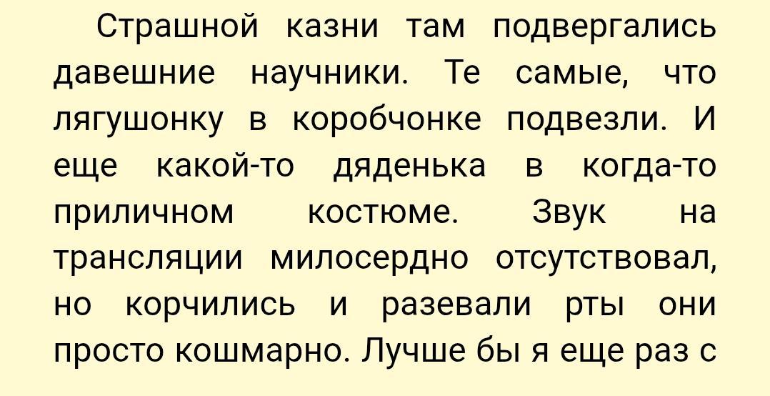 так же не догоняю зачем нужна избыточная жестокость - если в дальнейшем по сюжету понадобится смерть этих научников, то можно было бы показать по тв приговор суда к смертной казни.