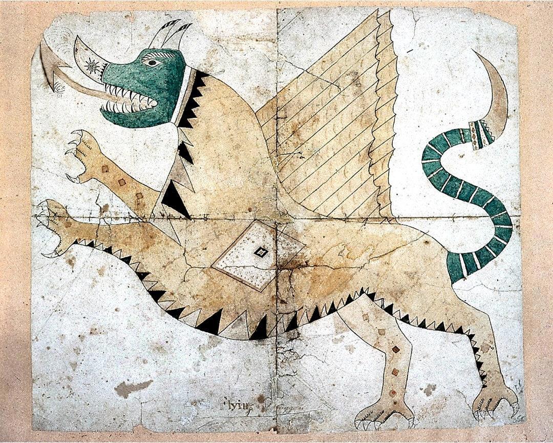 А вот вам иллюстрация к сборнику былин 1941 года, Добрыня Никитич освобождает от Змея Горыныча Забаву Путятичну. Он, блин, даже глаза пучит как китайский. Но в сороковые китайцы уже наверное могли и повлиять на то, какими видели драконов не азиаты...