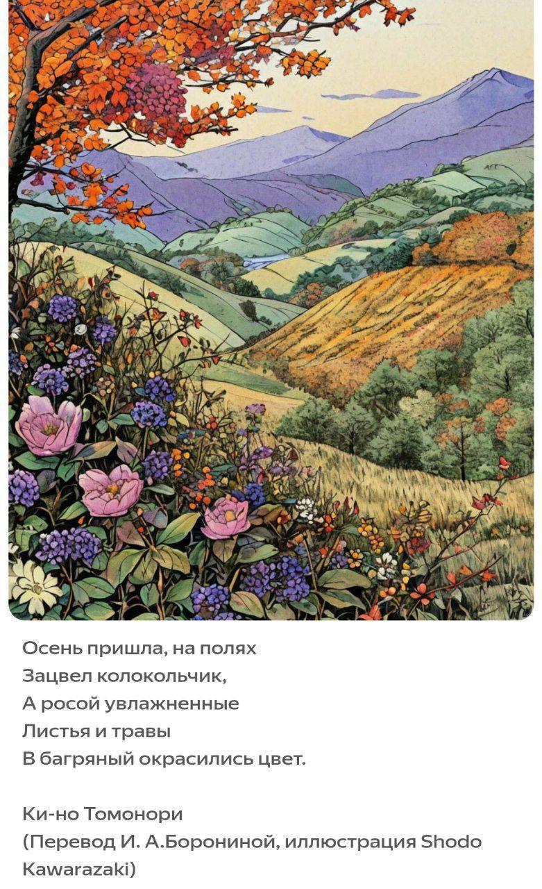 Здравствуйте, приятно встретить такого внимательного читателя. Отвечаю на ваш вопрос. В данном вака (танка) имеются ввиду именно колокольчики Кикё (широко колокольчик крупноцветковый) по латыни Platycodon g. Их японский (а есть ещё китайский и корейский) подвид известен примерно с 6-7 вв. В Японии цветут с конца июля по начало осени. И поля упомянуты не в смысле сельхозугодий (это дикие цветы).