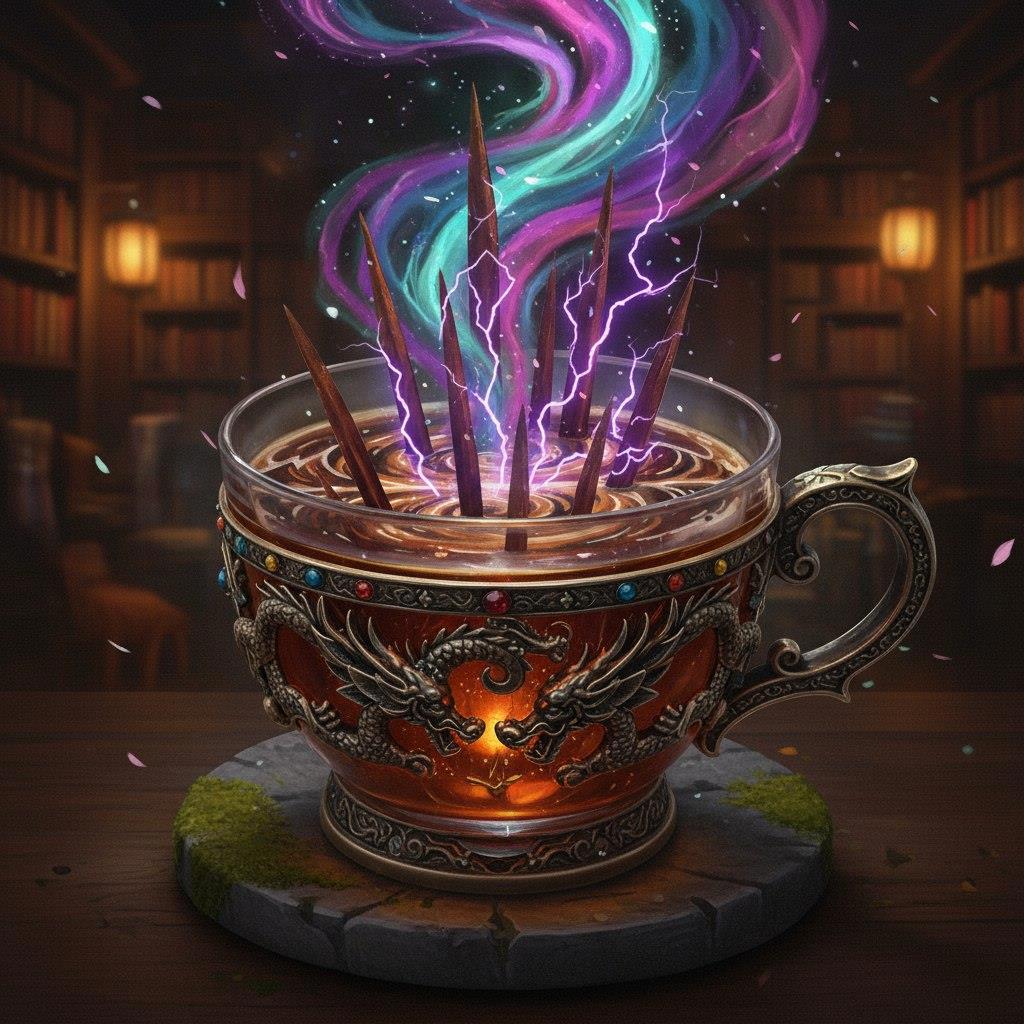 Берём ёжика из "Созданный в Бездне", другие прототипы чая времени, молнии фиолетового спектра… и аура, которая была при угаре под чаем из моей чешуи…