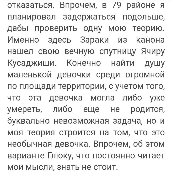 О госспади, вот чего гг ноет в первой главе по поводу Мидории. Для меня всегда был любимым вариант тот, когда это ты реинкарнировал и вспомнил свою прошлую жизнь. И на месте гг я бы так и подумал и не забивал бы голову этой фигней - считал бы себя реинкарнатором, раз нет обратных доказательств. Нет, нужно нытье, нужно самобичевание, хотя от гг ничего не зависило, нужно же обязательно сказать матери Изуку, что ты убил её сына, хотя он может реально вспомнил прошлую инкарнацию, неее, нужно обрушить это на бедную женщину.