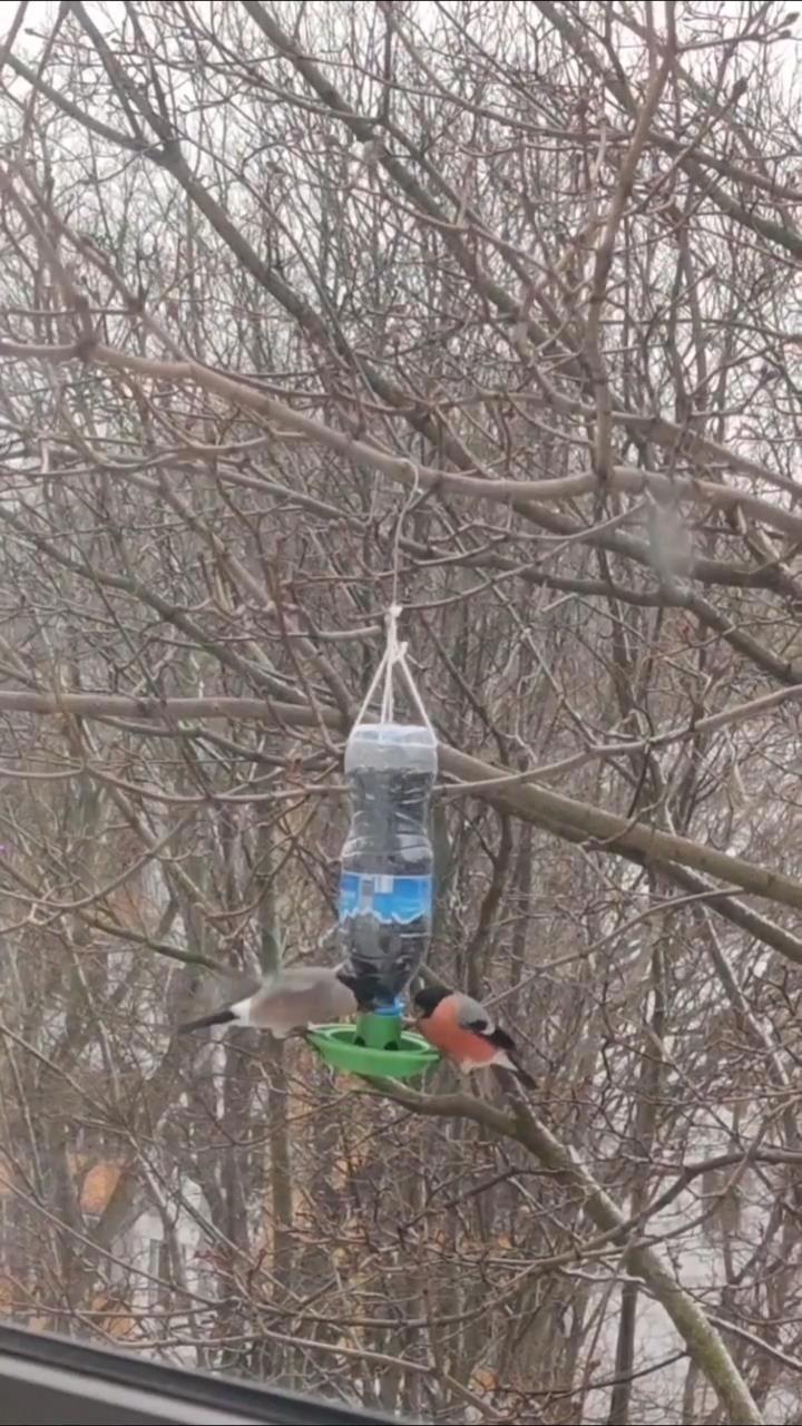 Очень много снегирей на кормушку с семечками прилетают. Жалко видео тут не разместить