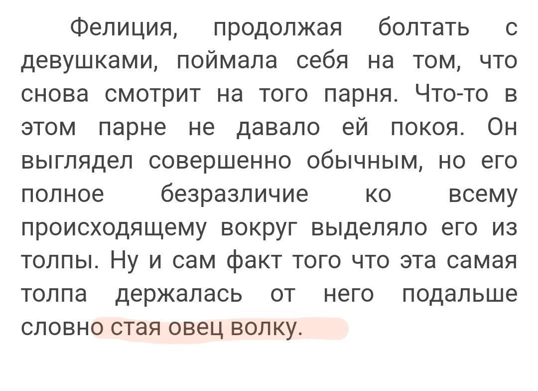 Все та же глава. Пропустил слово. Или я не знаю этого выражения или ещё что но подсказать что там должно быть не могу . Возможно "словно стадо овец чует волка "