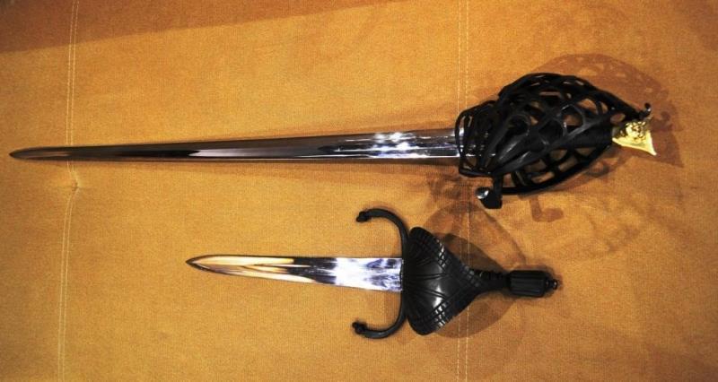 Но, на мой вкус, лучше было бы заменить эспаду скьявоной. Потому что и скьявона и эспада использовались в паре с кинжалом. Только если эспада имеет испанское происхождение, прославлена в дестрезе и затерта в куче романов, скьявону как-то авторы забывают. А ведь мечи по факту отличаются только гардами (у эспады крестом, у скьявоны корзинкой). Клинки тоже отличаются - но на мой взгляд с дуэльным преимуществом скьявоны - у нее клинок шире и предназначен не только для уколов, но и для рубки.