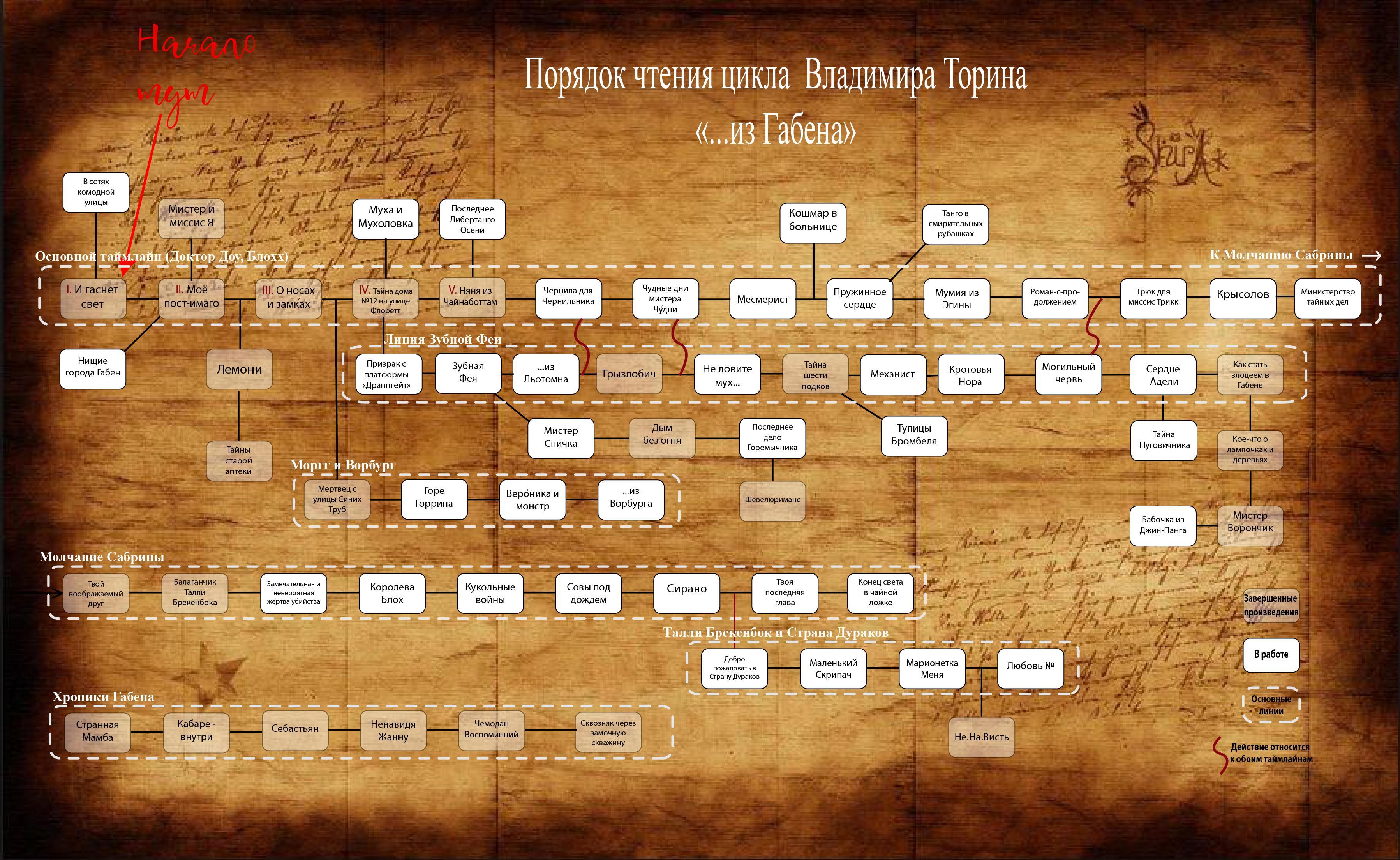 Порядок чтения историй именно про Габен. Красным отмечено начало.