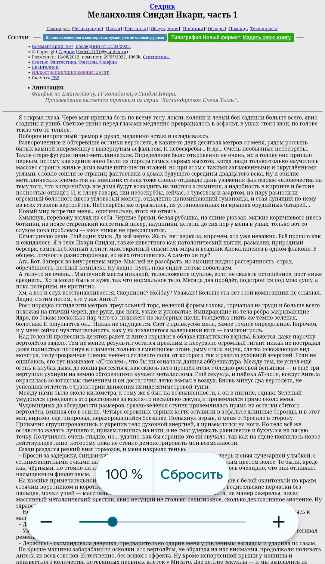 Буквально только что зашёл на страницу СиР Самиздат, но интерфейс показывается так, будто у меня формат изображения как на Пк (хотя это не так), кто нибудь смотрел? Может кто-нибудь знает, как вернуть мобильный формат.