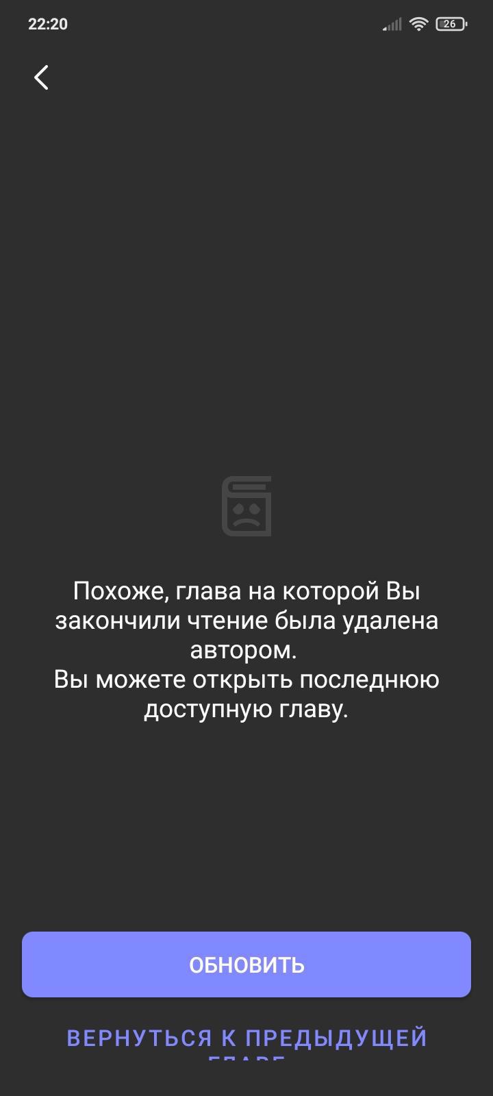 Четвёртая глава не отображается, пишет что автор удалил еë, очень жаль((