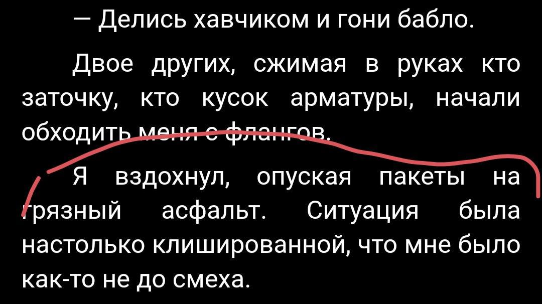 Спасибо за разъяснение всех плюсов и минусов. Учту это в будущем, когда буду писать экшн-сцены. А так, наверное, из-за отсутствия опыта в писательстве я и накосячил со сценой.
