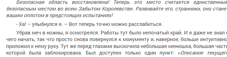 ГГ не знает с чего начать? Другие игроки "наступают на пятки" Он первый в городе, который будет "единственным безопасным местом В ЗК", и где будут аккумулироваться материальные ценности. Народу будет много и всем надо где-то жить. Естественно найти дом, где он будет сам жить, можно возле центральной площади, а можно подальше от чужих глаз. Да и "марадёрку" никто не отменял, чтобы обеспечить своё будущее. Хотя придут другие игроки с амбициями, и дом возле площади станет "камнем преткновения". После активации камня можно было пройтись и выбрать "домик с садиком". А восстановить можно и с другими игроками, или ачивка будет с преференциями?