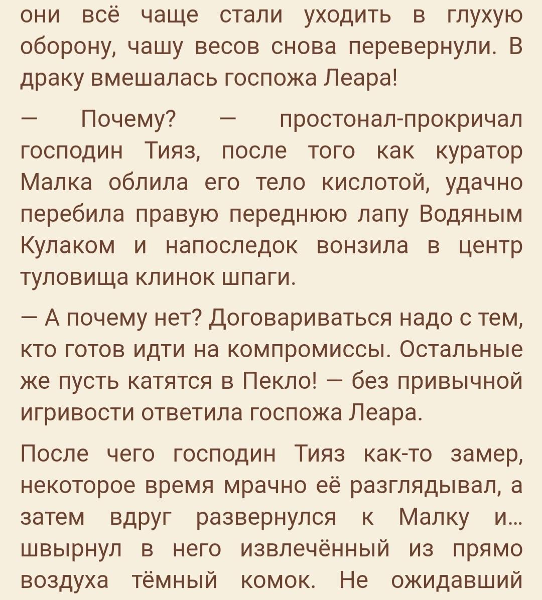 Никто не обсуждал название главы. Глава где "мой любимый момент" к чему это? Любимый момент автора, тогда нас ждет после того как Малк оденет маску.... Тияз: Сколько, идиот, можно было ждать?! Даже самому тупому ученику было ясно что делать!