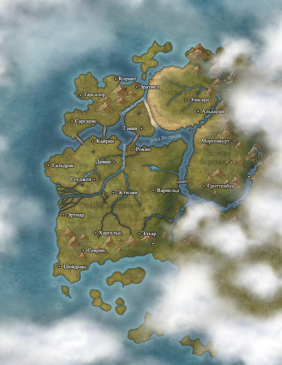 И по классике прикладываю карты континента, по которому путешествуют герои, также узнают детали у своих врагов (масштаб, конечно, соблюден примерно-точно, просто чтобы показать общий вид, прошу понять и простить).