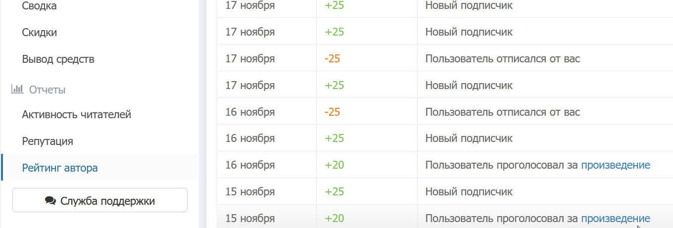 Блин, я у себя не найду, у меня такое было больше месяца назад. Там должна быть указана причина. Или пользователь снял лайк, или пользователь, проголосовавший за произведение, был удален.