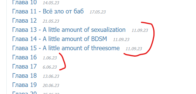 Хаха. Я забыл убрать сноску. Я, когда выкладывал и правда пропустил главы с 12 по 16. Там как раз было какое-то ужесточение правил АТ касательно 18+ сцен и я решил предостеречься. Но читатели Ат, которые всегда готовы высказать своё фи постельным сценам и пошлым обложкам, внезапно устроили бунд в комментах, по поводу того, что им недодали тех самых постельных сцен. Спустя какое-то время я без особого шума выложил эти главы задним числом, а сноску из 12-й забыл убрать. Посмотрите хотя бы на даты публикации.