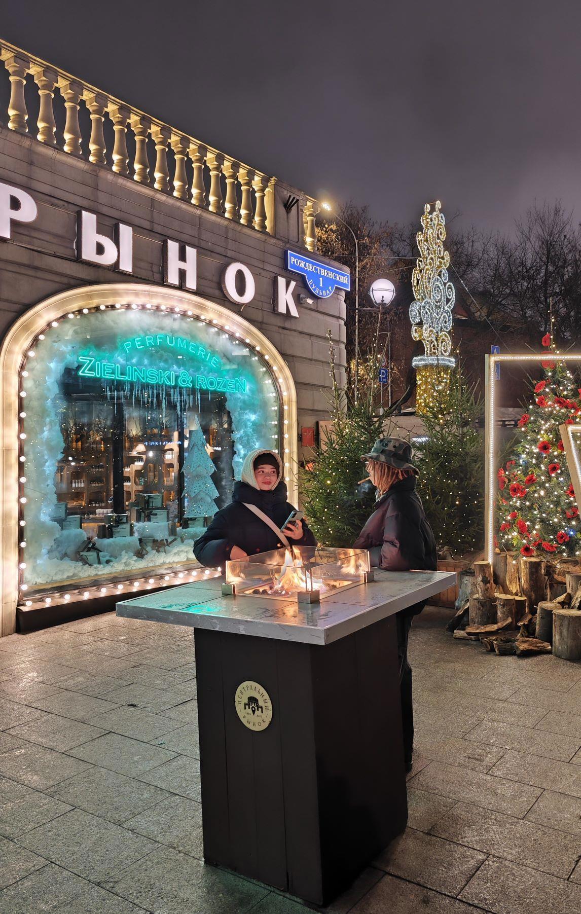 Около рынка бездомные греются у новогодних горелок. Но ни зимы, ни снега, а скоро Новый год - вот они гримасы капитализма.