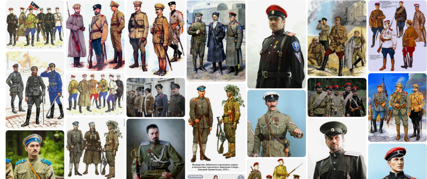 Доброе утро. Мне тут один поц написал, что нельзя, мол, бывшему белогвардейцу такую куртку, ибо это красноармейская форма. А я загуглил и смотрю — где же «красноармейская»-то? Только цветом похожа, ну так такого же цвета и белые носили, вон гляньте внизу, через одну такая же! Ну так что, кто из нас всё-таки прав, может кто-нибудь рассудить? Заранее спасибо!