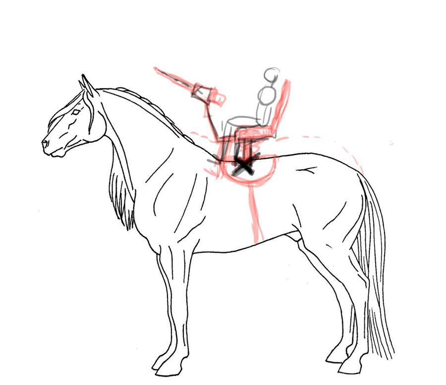 там как бы и не седло а целая машина, со стременным управлением и гераскопами и всадник в этой конструкции далеко не самая тяжелая часть. К сожалению я плохо рисую технику, поэтому все спрятал под попоной.