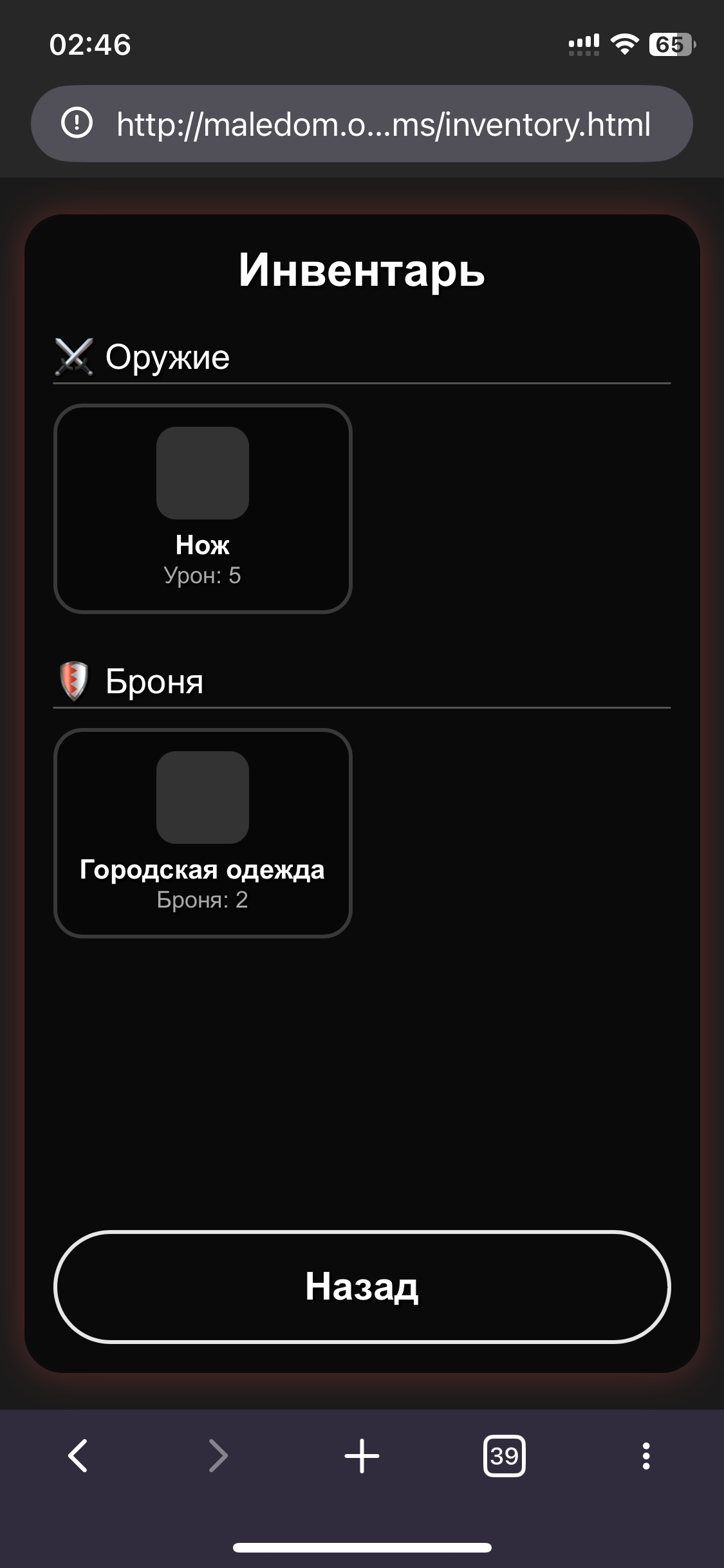 загляни в инвентарь ) я еще так, по вечерам пилю, может получится что то годное … пока что насоздовал локаций пустышек, что бы потом последовательно идти и не переделывать каждый файл, и так у хоста допиливаю по кд новую переменную