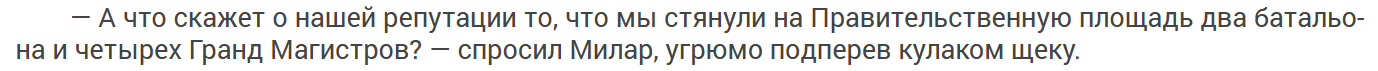 Кириллу не обязательно делать баталии, дуэли, магические битвы, что бы дать читателям экшена, эпика и пафоса)