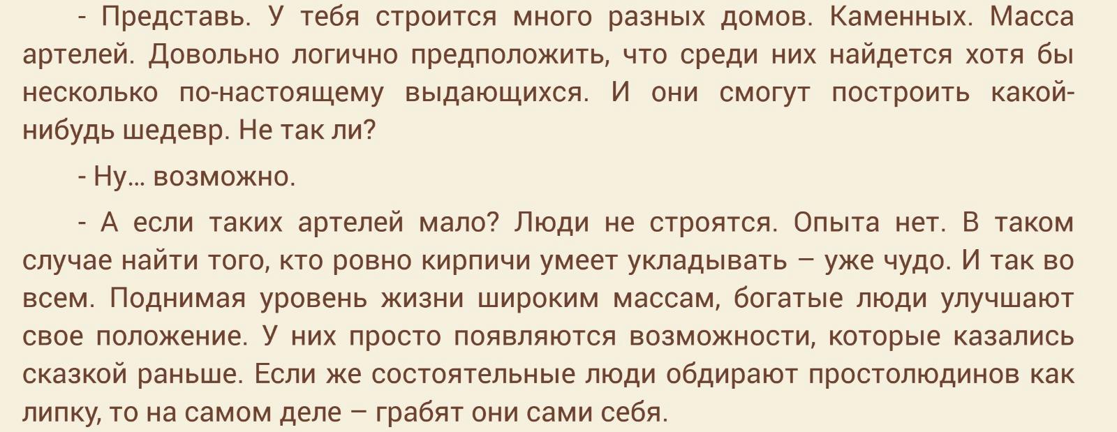 Ведь речь идет не только о самом низе (где тупо добыча ресурса) , но и о среднем слое -- который и дает те самые искомые "шедевры" , прорывы в науке , искусстве и прочей индустрии развлечений.