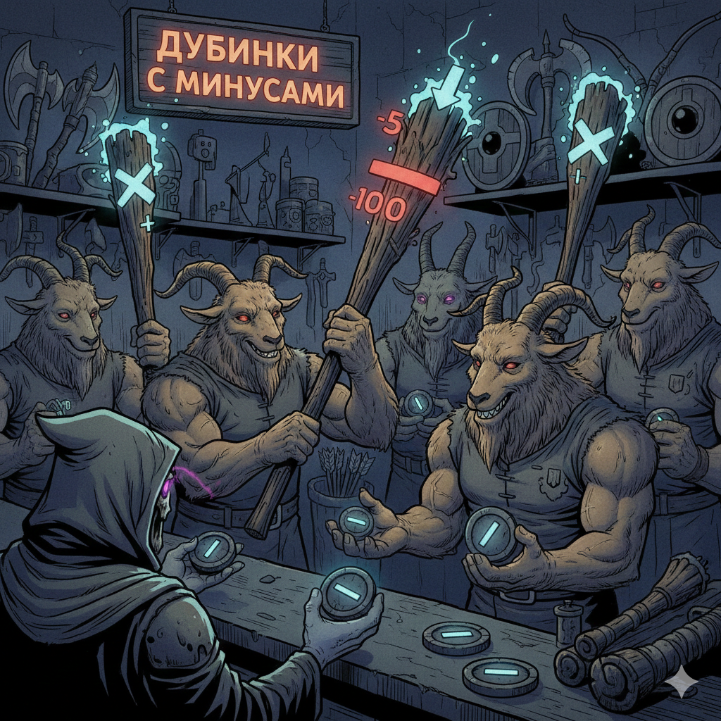 Со всем уважением. Я разделяю вашу точку зрения, но интересует ход мысли agniman. Мне интересно как он представляет процедуру покупки козлищами дубинок с минусами. И вообще, в отсутствии проды от автора это может быть крайне интересно. Вон даже автор негодует из-за несправедливости, так как его не признали козлишем, не смотря на рейтинг. Мне не хватает мрачной истории от agniman который пояснил бы такую несправедливость. Ещё не хватает красивой и продуманной речи как в аниме, которая продолжит обличать автора, а то начало положено, но из-за игнора не могу узнать больше