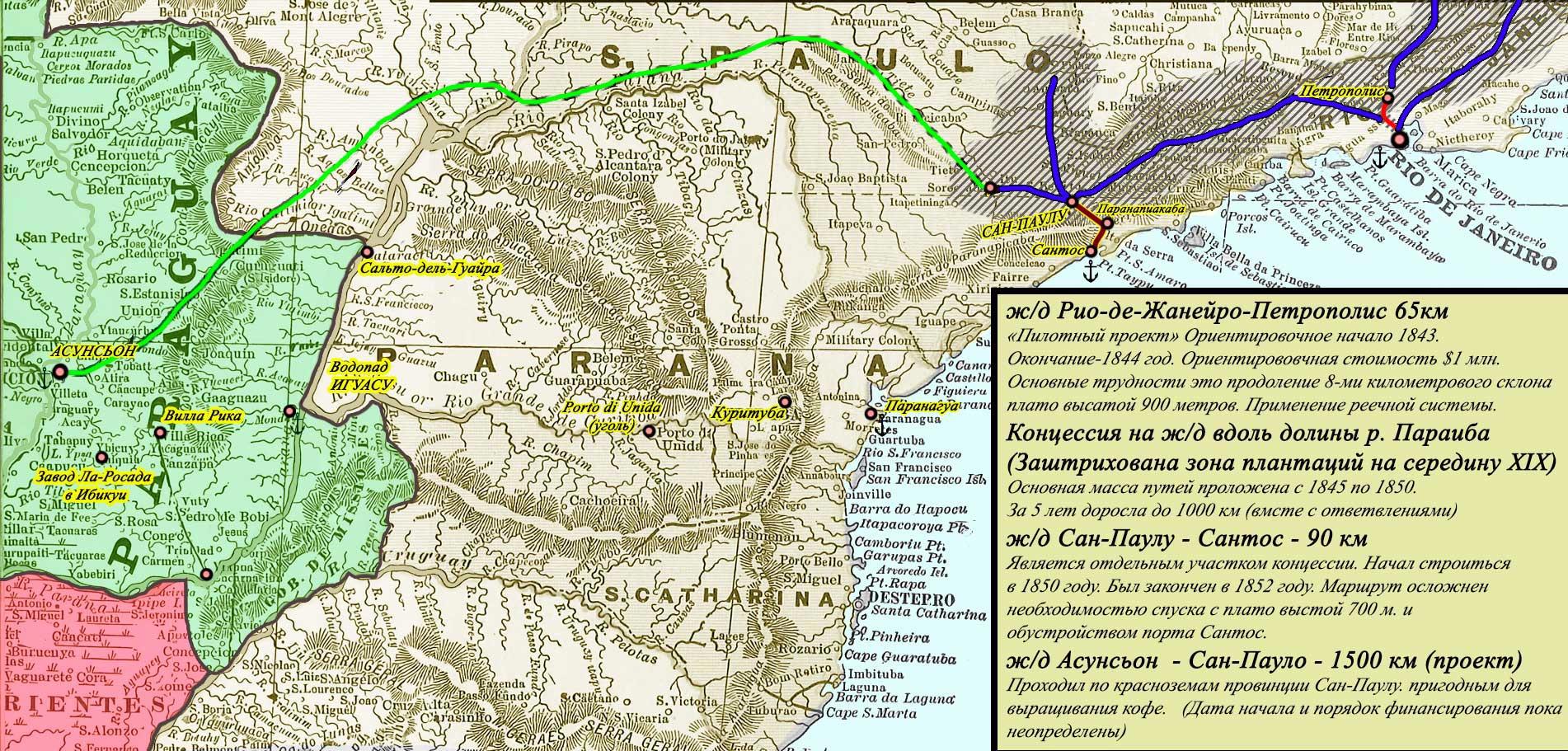 Первая железная дорога с метровой колеёй (1000 мм) в Бразилии — это Estrada de Ferro Santos-Jundiaí 1867 год (43 км)