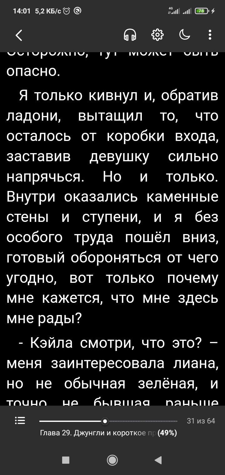 Не в темпе дело. Темп то мне лично как раз нравится. В объеме. По сути глава читается за пару минут. Если бы автор выкладывал как Дэн Михайлов по три четыре главы, пусть реже, но больше, был бы обхват. А темп уровня приманки хаоса или боже упаси мимика когда герой скачет галопом минуя все, что окружает точно не нужен.