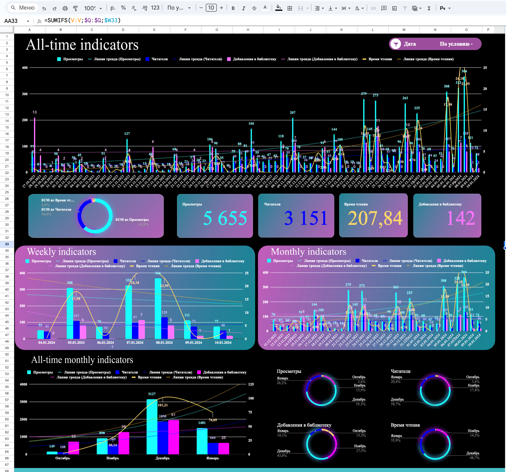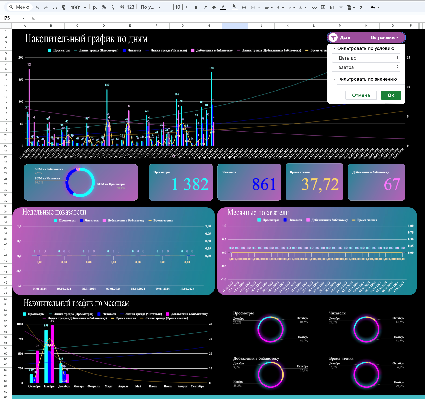 Средние графики пустые, так как в подложке нет данных, при заполнении будет выглядеть примерно так.
