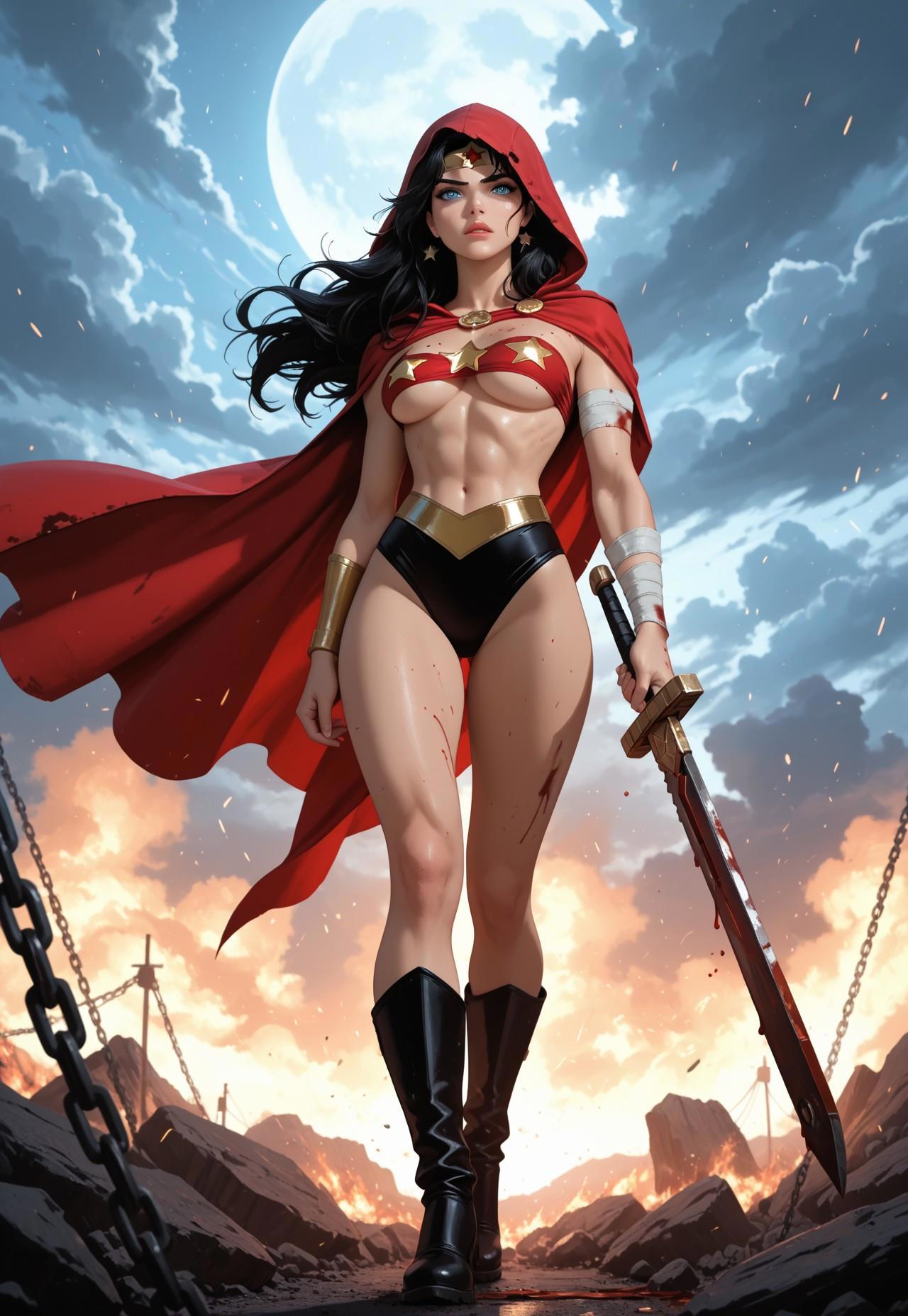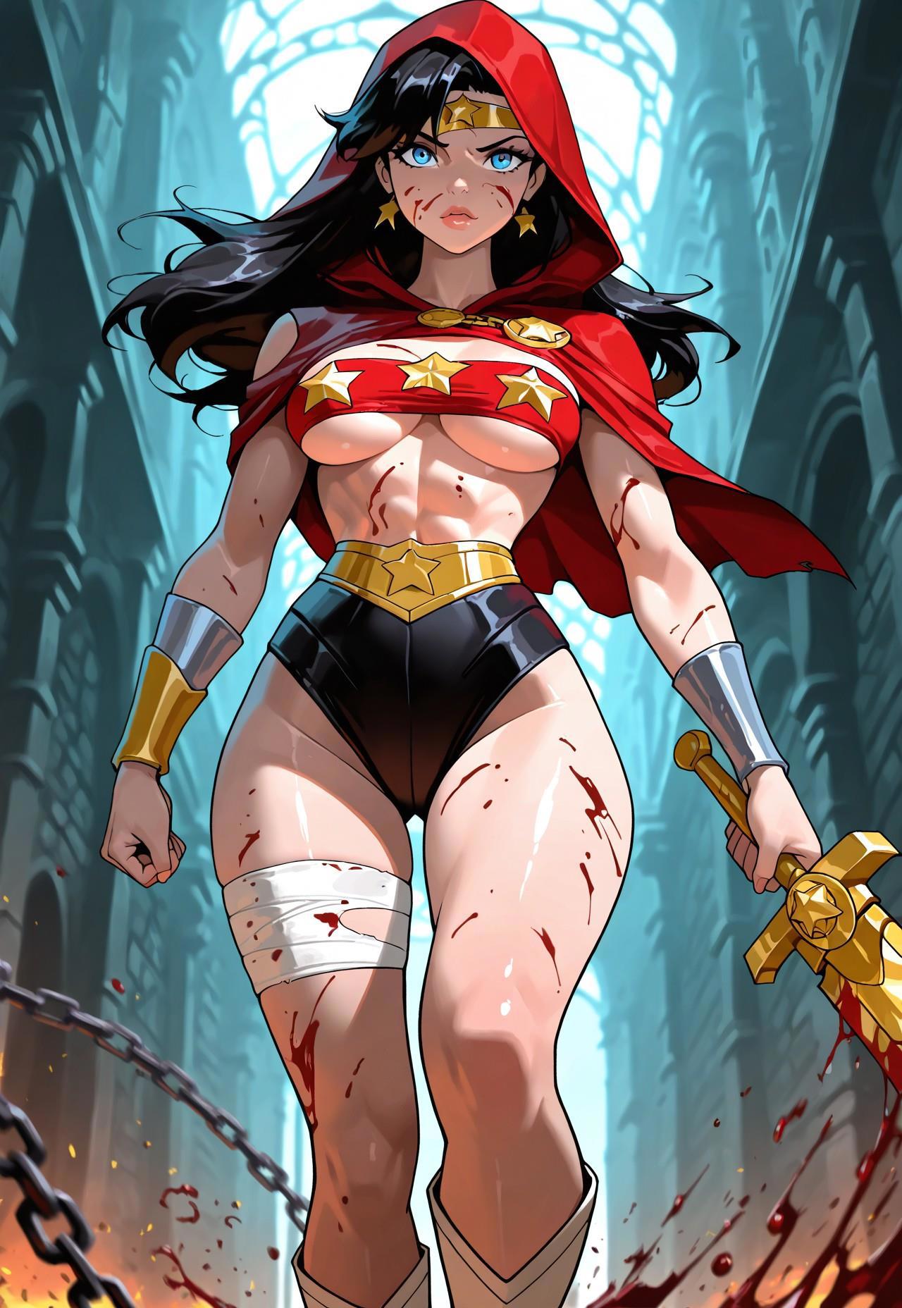 Да я бы её "одел", но нейросетка и так мне постоянно "паучье тело" отдельно старалась нарисовать,и я просто побоялся что одежда - окончательно всё собьет)))
