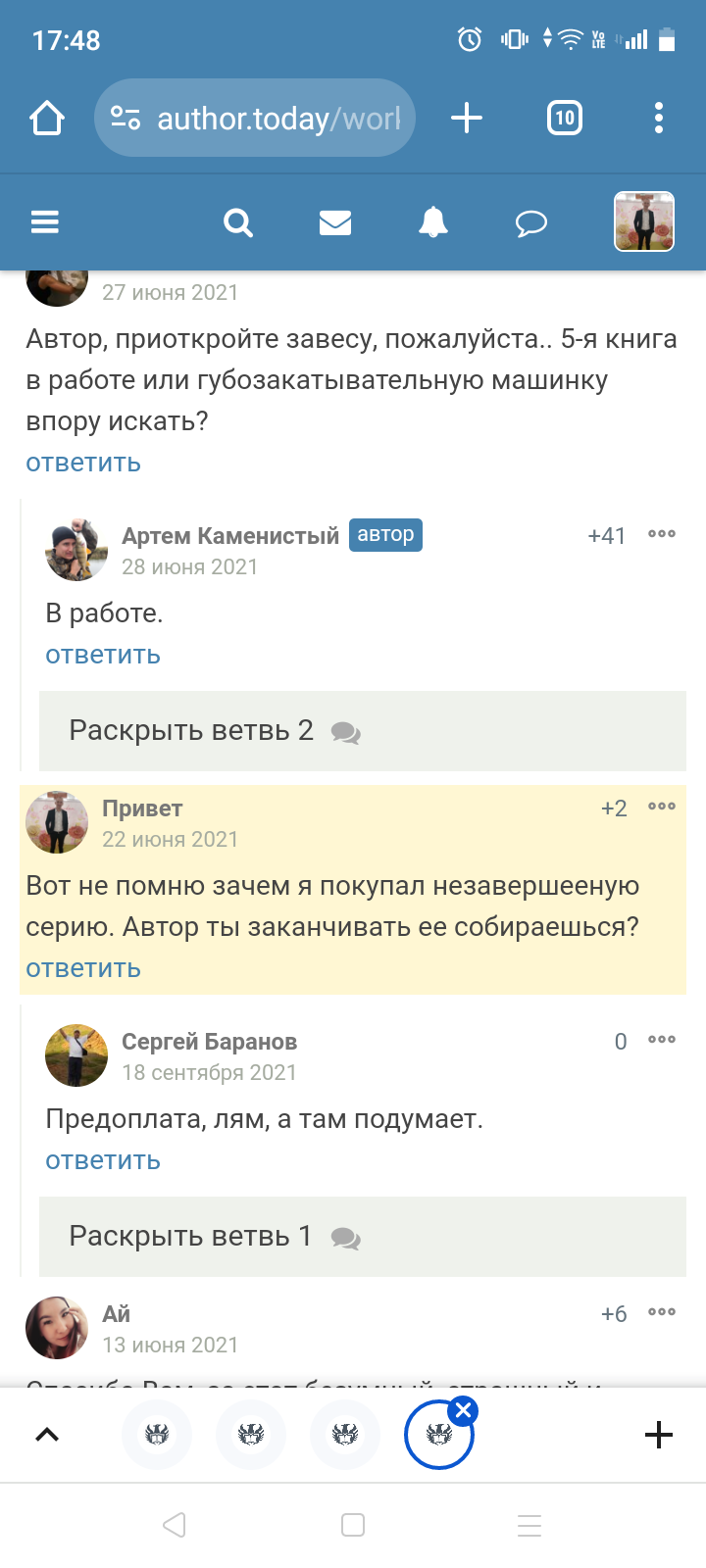 Да автор если бы книги писал сколько коментарии уже бы были готовы и сери морской дьявол, и орк. Я орка читал только потому, что заявлено было, чьо продолжение будет в конце 22 начале 23 года.