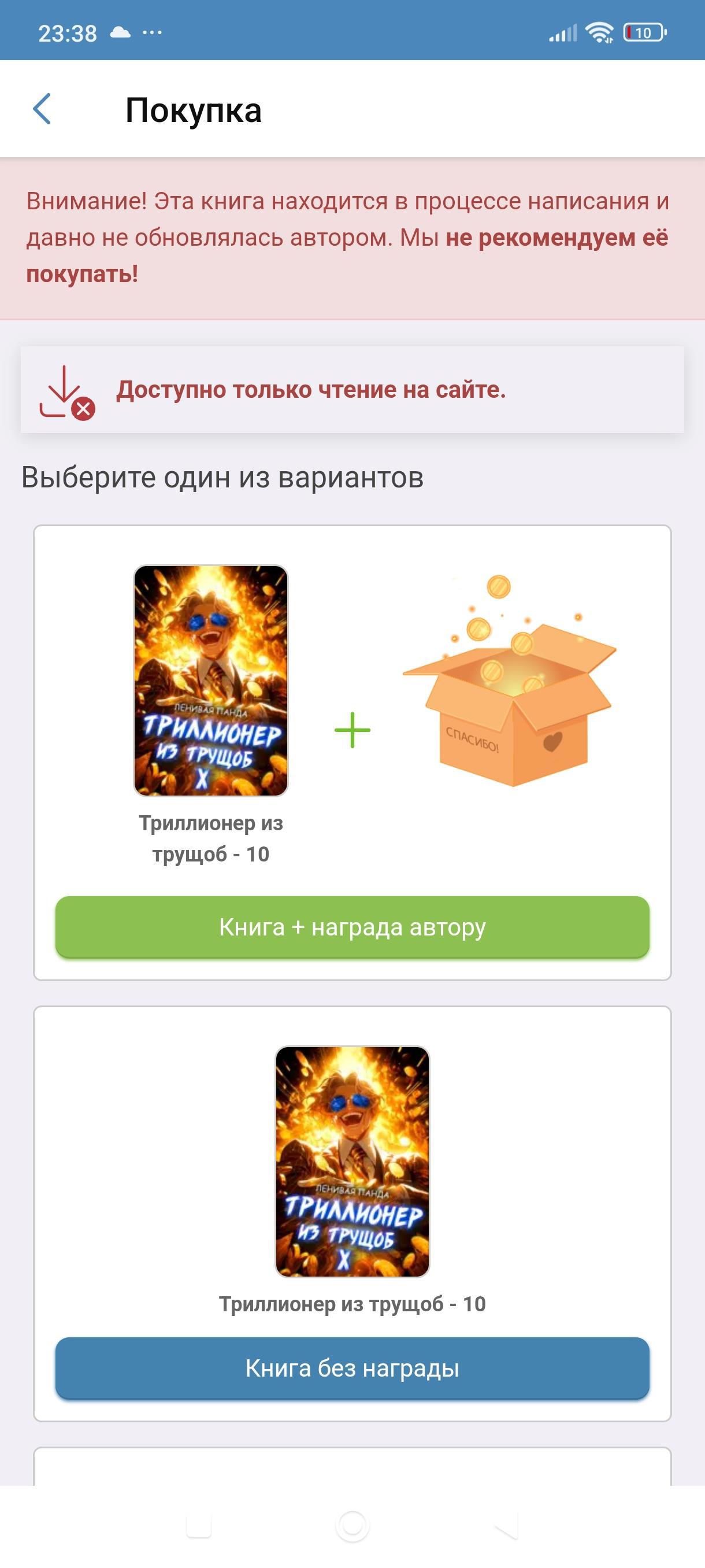 Я всего 2 негативных написала) первый это "любителю картошки" и второй " повелителю странного замка" когда сказали, что не будут продолжать циклы из-за малого кол-ва лайков. Спустя время продолжили их, но читать уже не хочется... Так и валяются в библиотеке