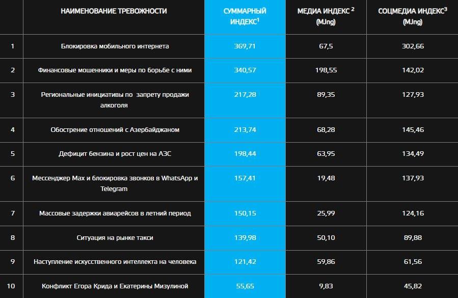 Топ-10 тревожащих россиян тем в третьем квартале 2025 года по данным (https://www.cros.ru/ru/exploration/anxiety/4124/) коммуникационного агентства КРОС.