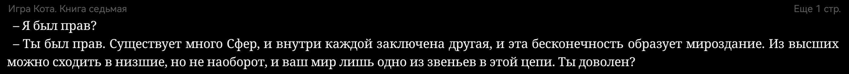 Перечитайте концовку Кота, там чётко обозначается, что мир это бесконечная последовательность симуляций сферы внутри сферы.