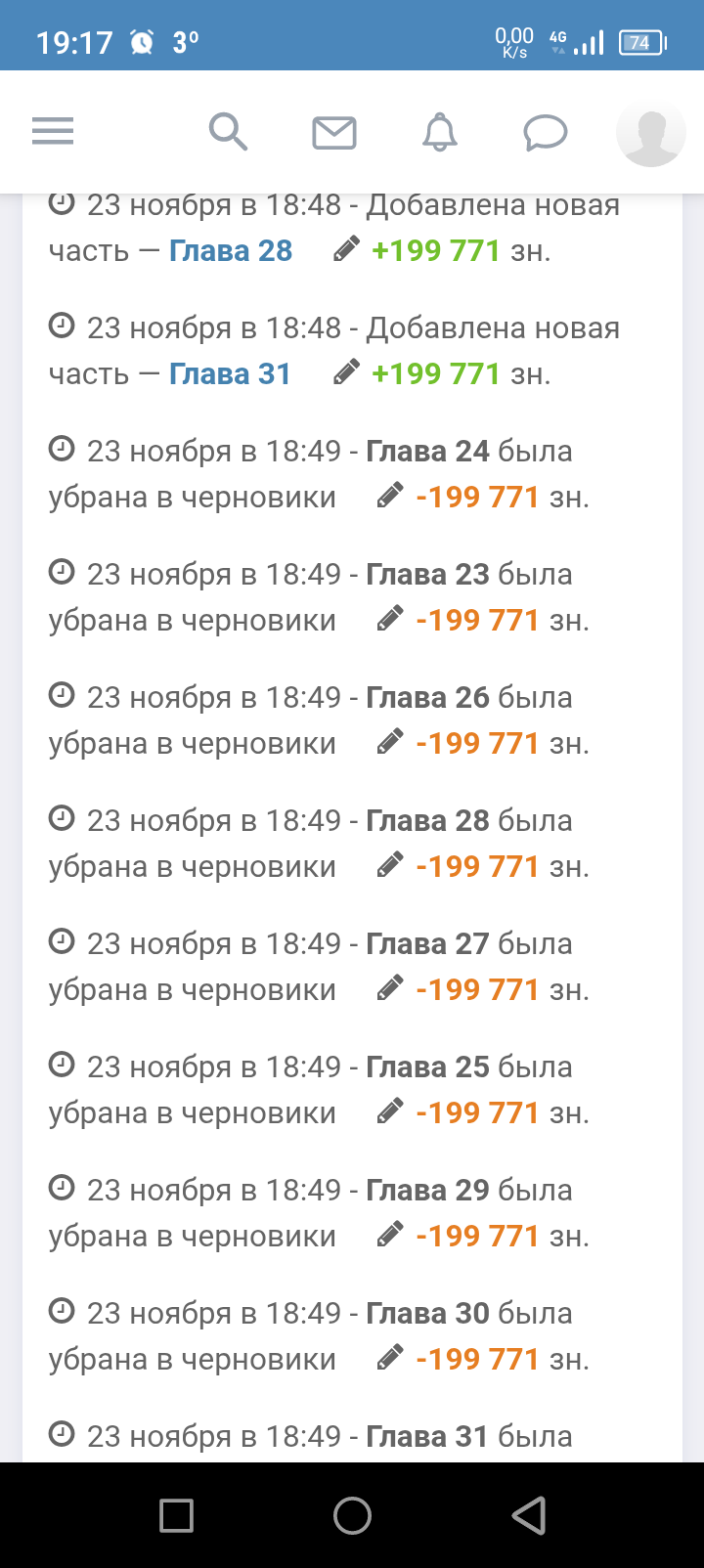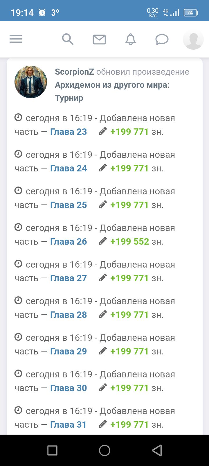Может Вам как то разобраться с выкладкой( может сайт а не Вы), а то мне через день приходит что обновление книги, но ничего нет. Как то нервирует.